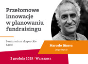 Czym jest przełomowa innowacja (ang. disruptive innovation)? Jak wykorzystać do planowania fundraisingu emocje oraz wyobraźnię? Dlaczego racjonalne myślenie nie zawsze jest pomocne przy budowaniu skutecznych narracji skierowanych do darczyńców? Zapraszamy na wyjątkowe, bezpłatne seminarium, które poprowadzi pochodzący z Argentyny ekspert i innowator Marcelo Iñarra....