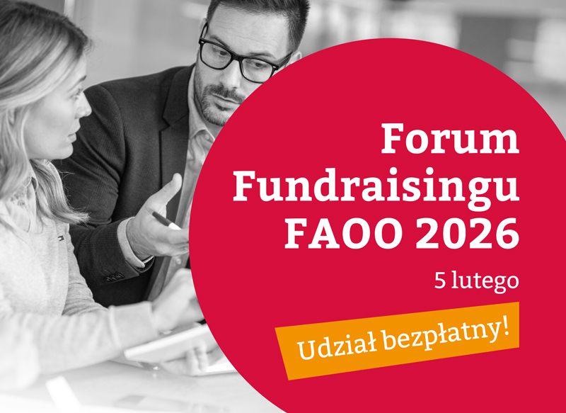 Coraz więcej darczyńców i coraz więcej organizacji, które liczą na wsparcie. Coraz więcej problemów i oczekiwań wobec osób zajmujących się pozyskiwaniem funduszy dla NGO. Jak radzić sobie z tymi wyzwaniami? Zapraszamy na pierwsze Forum Fundraisingu FAOO – jednodniowe, bezpłatne wydarzenie w formie mini-konferencji, które w całości poświęcimy na nieskrępowaną wymianę doświadczeń, wiedzy oraz know-how między fundraiserkami i fundraiserami z całej Polski.